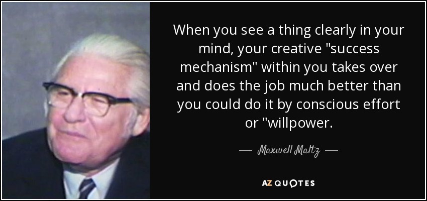 When you see a thing clearly in your mind, your creative "success mechanism" within you takes over and does the job much better than you could do it by conscious effort or "willpower.