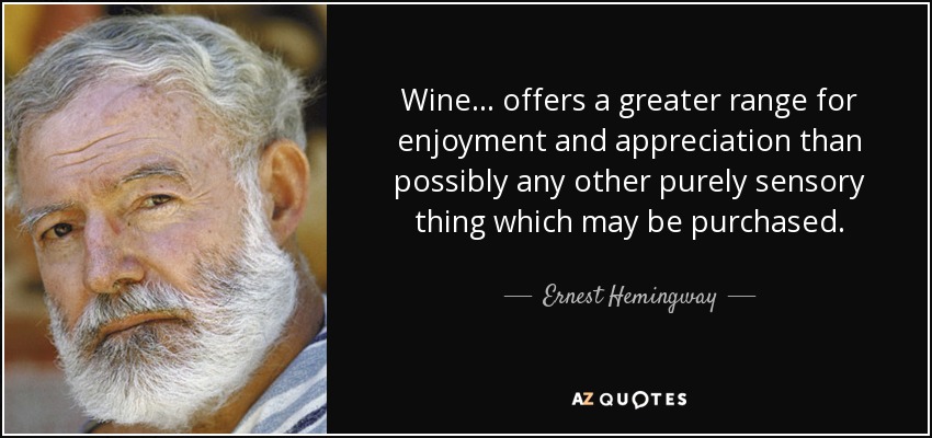 Wine ... offers a greater range for enjoyment and appreciation than possibly any other purely sensory thing which may be purchased.