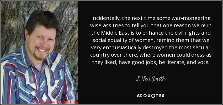 Incidentally, the next time some war-mongering wise-ass tries to tell you that one reason we're in the Middle East is to enhance the civil rights and social equality of women, remind them that we very enthusiastically destroyed the most secular country over there, where women could dress as they liked, have good jobs, be literate, and vote.