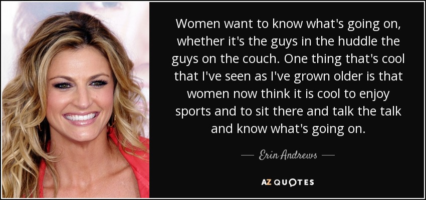Women want to know what's going on, whether it's the guys in the huddle the guys on the couch. One thing that's cool that I've seen as I've grown older is that women now think it is cool to enjoy sports and to sit there and talk the talk and know what's going on.