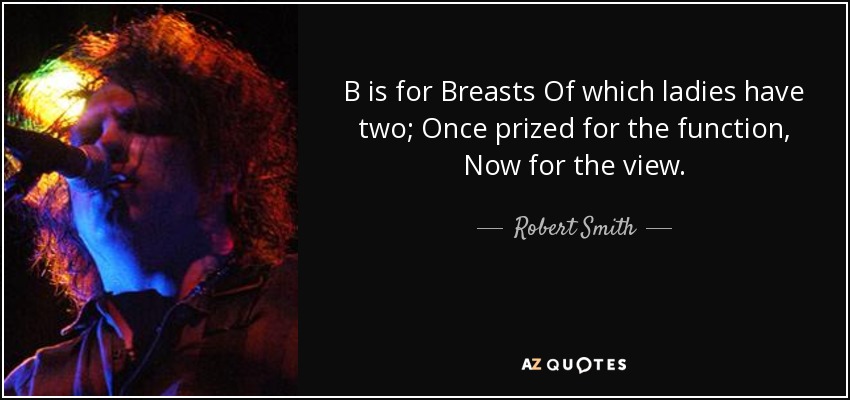 B is for Breasts Of which ladies have two; Once prized for the function, Now for the view.