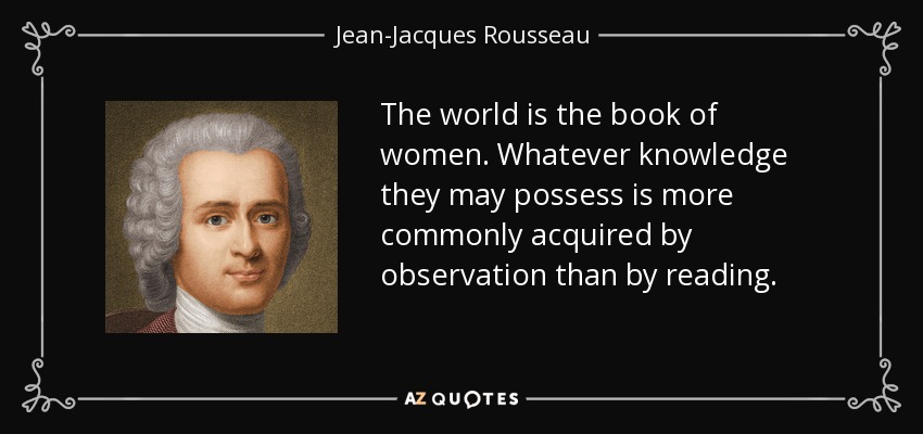 The world is the book of women. Whatever knowledge they may possess is more commonly acquired by observation than by reading.