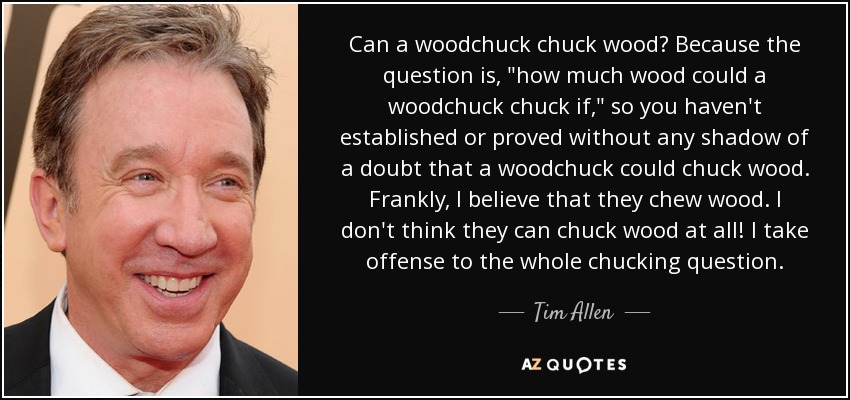 Can a woodchuck chuck wood? Because the question is, "how much wood could a woodchuck chuck if," so you haven't established or proved without any shadow of a doubt that a woodchuck could chuck wood. Frankly, I believe that they chew wood. I don't think they can chuck wood at all! I take offense to the whole chucking question.