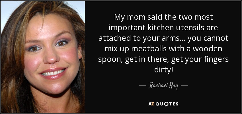 My mom said the two most important kitchen utensils are attached to your arms... you cannot mix up meatballs with a wooden spoon, get in there, get your fingers dirty!