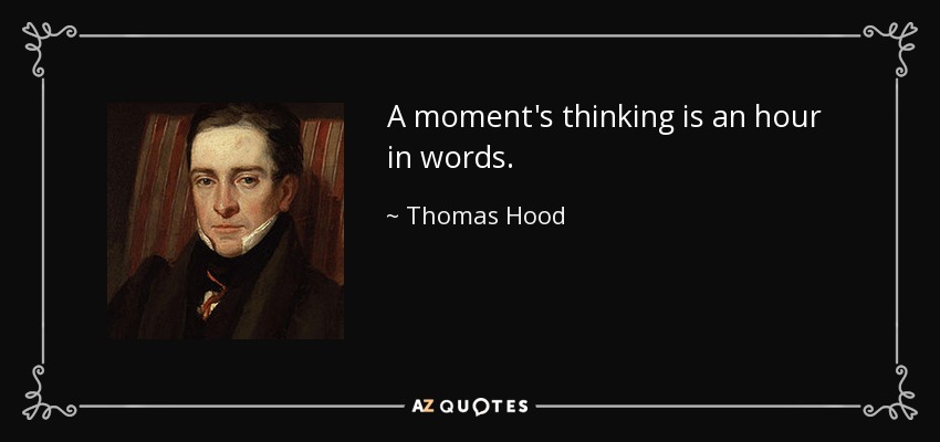 A moment's thinking is an hour in words.