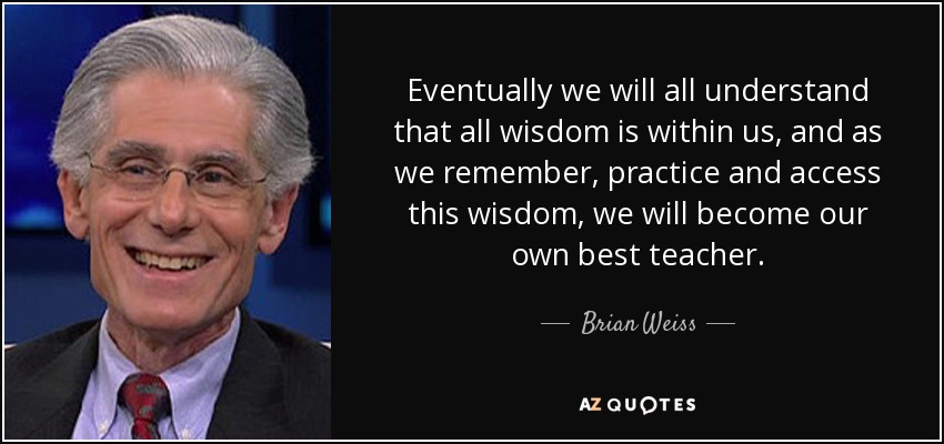 Eventually we will all understand that all wisdom is within us, and as we remember, practice and access this wisdom, we will become our own best teacher.