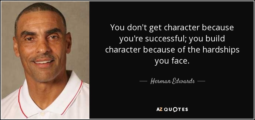 You don't get character because you're successful; you build character because of the hardships you face.