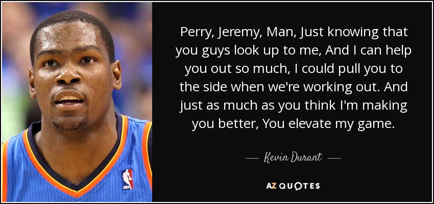 Perry, Jeremy, Man, Just knowing that you guys look up to me, And I can help you out so much, I could pull you to the side when we're working out. And just as much as you think I'm making you better, You elevate my game.