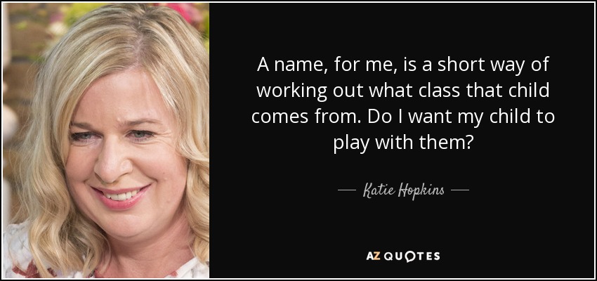A name, for me, is a short way of working out what class that child comes from. Do I want my child to play with them?