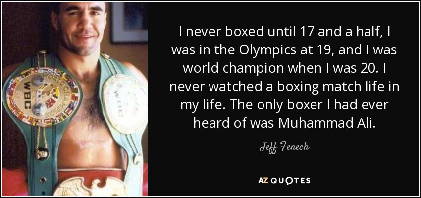 I never boxed until 17 and a half, I was in the Olympics at 19, and I was world champion when I was 20. I never watched a boxing match life in my life. The only boxer I had ever heard of was Muhammad Ali.