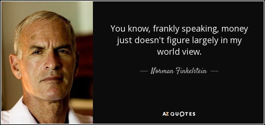 You know, frankly speaking, money just doesn't figure largely in my world view.