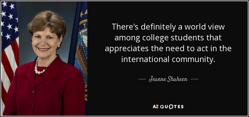 There's definitely a world view among college students that appreciates the need to act in the international community.