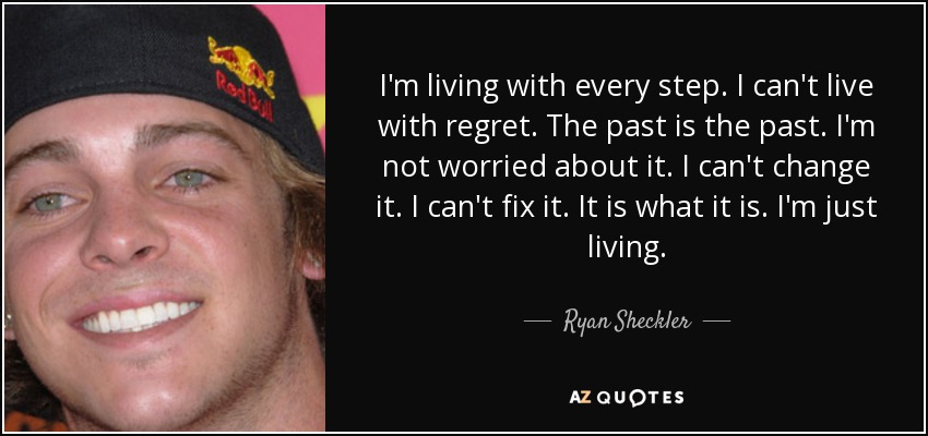 I'm living with every step. I can't live with regret. The past is the past. I'm not worried about it. I can't change it. I can't fix it. It is what it is. I'm just living.