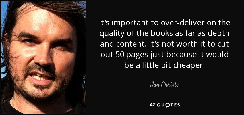 It's important to over-deliver on the quality of the books as far as depth and content. It's not worth it to cut out 50 pages just because it would be a little bit cheaper.