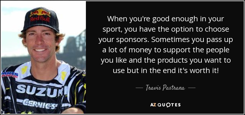 When you're good enough in your sport, you have the option to choose your sponsors. Sometimes you pass up a lot of money to support the people you like and the products you want to use but in the end it's worth it!