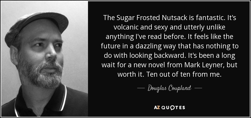 The Sugar Frosted Nutsack is fantastic. It's volcanic and sexy and utterly unlike anything I've read before. It feels like the future in a dazzling way that has nothing to do with looking backward. It's been a long wait for a new novel from Mark Leyner, but worth it. Ten out of ten from me.