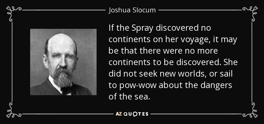 If the Spray discovered no continents on her voyage, it may be that there were no more continents to be discovered. She did not seek new worlds, or sail to pow-wow about the dangers of the sea.