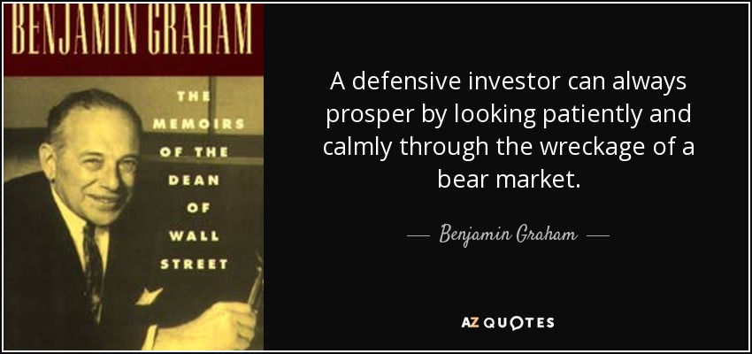 A defensive investor can always prosper by looking patiently and calmly through the wreckage of a bear market.