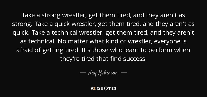 Take a strong wrestler, get them tired, and they aren't as strong. Take a quick wrestler, get them tired, and they aren't as quick. Take a technical wrestler, get them tired, and they aren't as technical. No matter what kind of wrestler, everyone is afraid of getting tired. It's those who learn to perform when they're tired that find success.