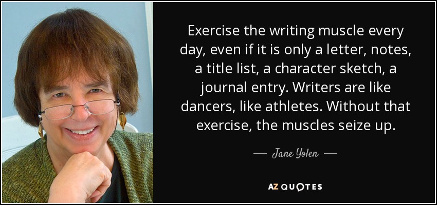 Exercise the writing muscle every day, even if it is only a letter, notes, a title list, a character sketch, a journal entry. Writers are like dancers, like athletes. Without that exercise, the muscles seize up.
