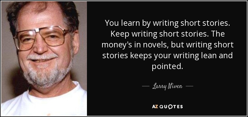 You learn by writing short stories. Keep writing short stories. The money's in novels, but writing short stories keeps your writing lean and pointed.