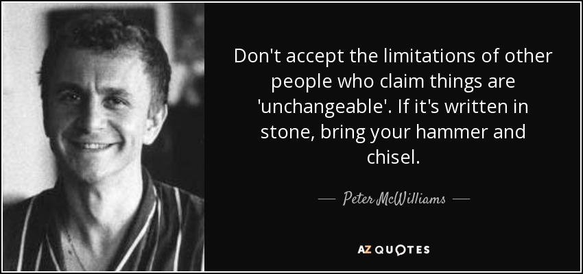 Don't accept the limitations of other people who claim things are 'unchangeable'. If it's written in stone, bring your hammer and chisel.