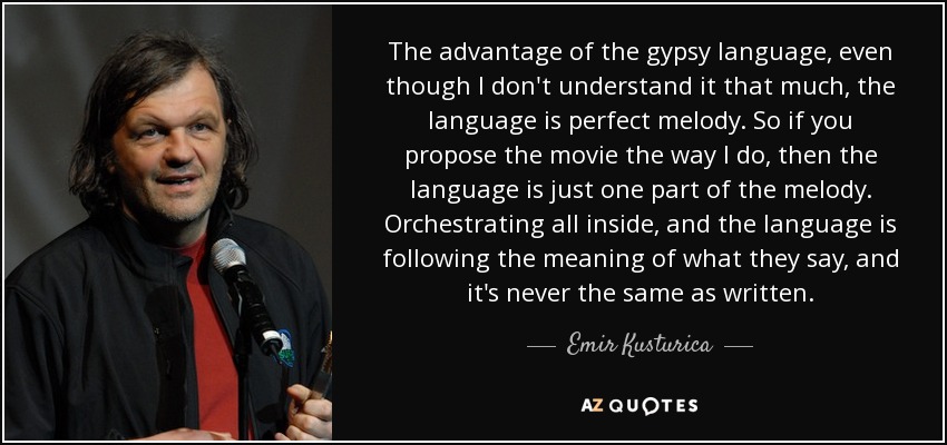 The advantage of the gypsy language, even though I don't understand it that much, the language is perfect melody. So if you propose the movie the way I do, then the language is just one part of the melody. Orchestrating all inside, and the language is following the meaning of what they say, and it's never the same as written.