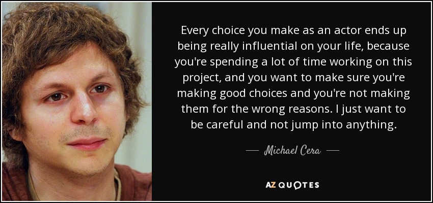 Every choice you make as an actor ends up being really influential on your life, because you're spending a lot of time working on this project, and you want to make sure you're making good choices and you're not making them for the wrong reasons. I just want to be careful and not jump into anything.