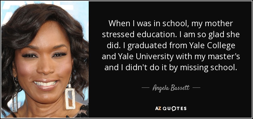 When I was in school, my mother stressed education. I am so glad she did. I graduated from Yale College and Yale University with my master's and I didn't do it by missing school.