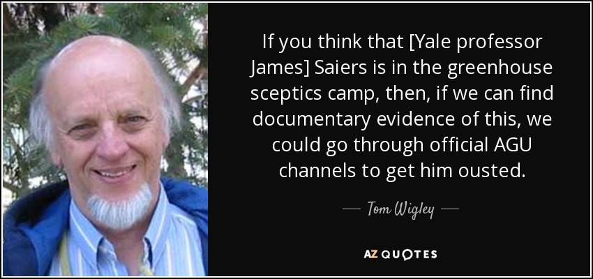 If you think that [Yale professor James] Saiers is in the greenhouse sceptics camp, then, if we can find documentary evidence of this, we could go through official AGU channels to get him ousted.