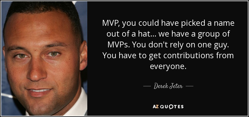 MVP, you could have picked a name out of a hat... we have a group of MVPs. You don't rely on one guy. You have to get contributions from everyone.