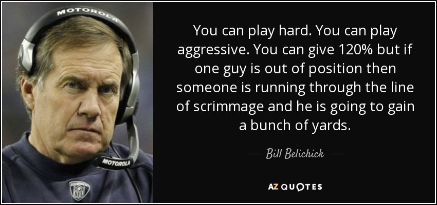 You can play hard. You can play aggressive. You can give 120% but if one guy is out of position then someone is running through the line of scrimmage and he is going to gain a bunch of yards.