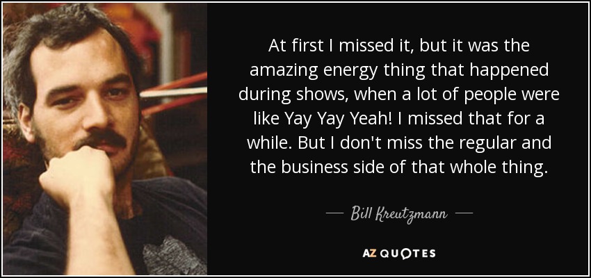 At first I missed it, but it was the amazing energy thing that happened during shows, when a lot of people were like Yay Yay Yeah! I missed that for a while. But I don't miss the regular and the business side of that whole thing.
