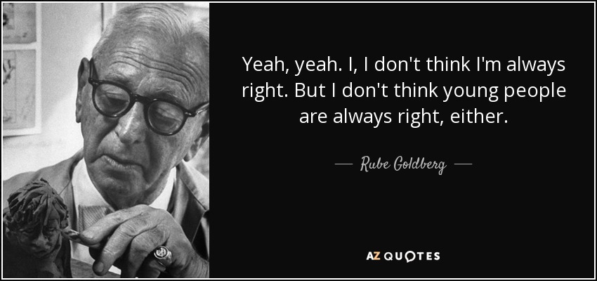 Yeah, yeah. I, I don't think I'm always right. But I don't think young people are always right, either.