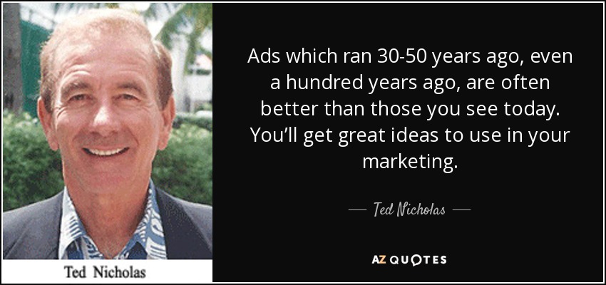 Ads which ran 30-50 years ago, even a hundred years ago, are often better than those you see today. You’ll get great ideas to use in your marketing.