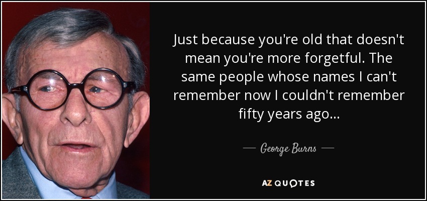 Just because you're old that doesn't mean you're more forgetful. The same people whose names I can't remember now I couldn't remember fifty years ago. . .