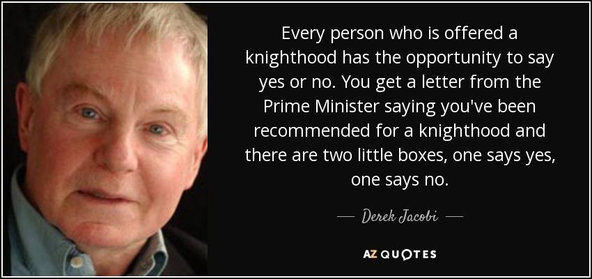 Every person who is offered a knighthood has the opportunity to say yes or no. You get a letter from the Prime Minister saying you've been recommended for a knighthood and there are two little boxes, one says yes, one says no.