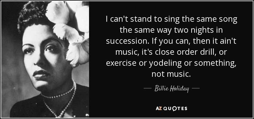 I can't stand to sing the same song the same way two nights in succession. If you can, then it ain't music, it's close order drill, or exercise or yodeling or something, not music.