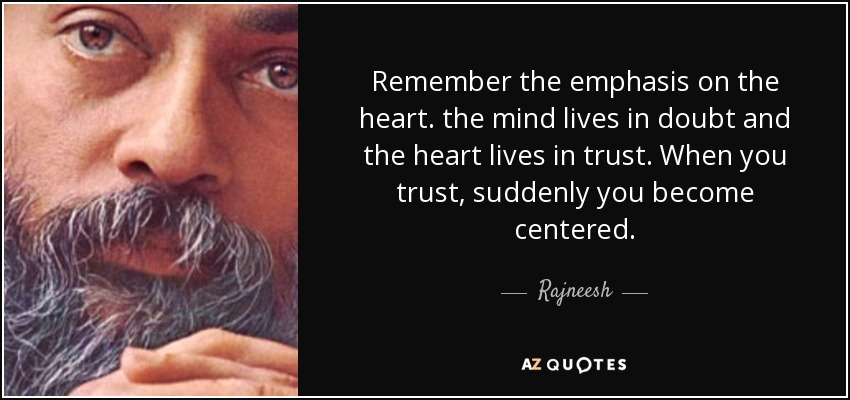 Remember the emphasis on the heart. the mind lives in doubt and the heart lives in trust. When you trust, suddenly you become centered.