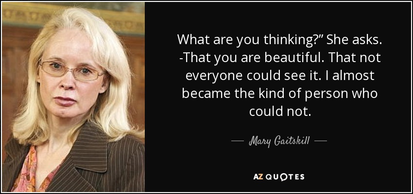 What are you thinking?” She asks. -That you are beautiful. That not everyone could see it. I almost became the kind of person who could not.