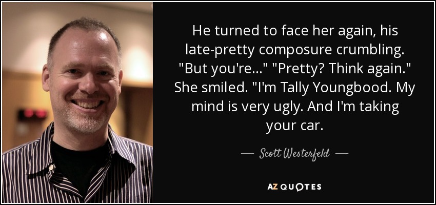 He turned to face her again, his late-pretty composure crumbling. "But you're..." "Pretty? Think again." She smiled. "I'm Tally Youngbood. My mind is very ugly. And I'm taking your car.