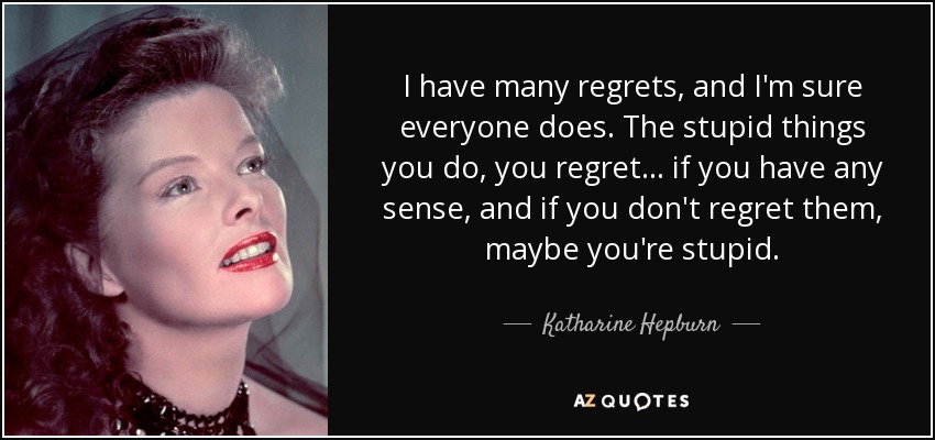 I have many regrets, and I'm sure everyone does. The stupid things you do, you regret... if you have any sense, and if you don't regret them, maybe you're stupid.