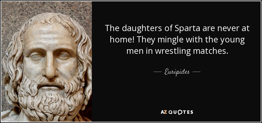 The daughters of Sparta are never at home! They mingle with the young men in wrestling matches.
