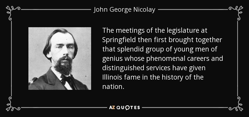 The meetings of the legislature at Springfield then first brought together that splendid group of young men of genius whose phenomenal careers and distinguished services have given Illinois fame in the history of the nation.