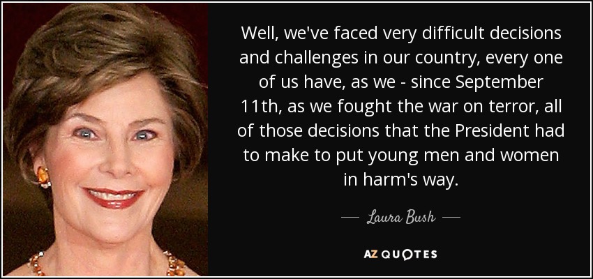 Well, we've faced very difficult decisions and challenges in our country, every one of us have, as we - since September 11th, as we fought the war on terror, all of those decisions that the President had to make to put young men and women in harm's way.