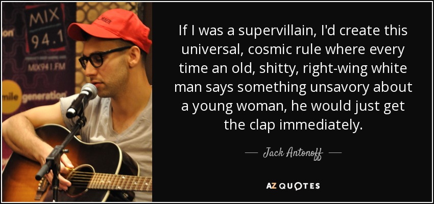 If I was a supervillain, I'd create this universal, cosmic rule where every time an old, shitty, right-wing white man says something unsavory about a young woman, he would just get the clap immediately.