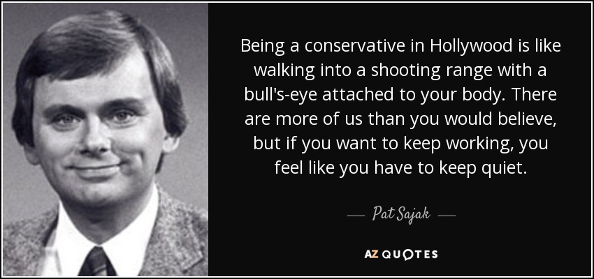 Being a conservative in Hollywood is like walking into a shooting range with a bull's-eye attached to your body. There are more of us than you would believe, but if you want to keep working, you feel like you have to keep quiet.