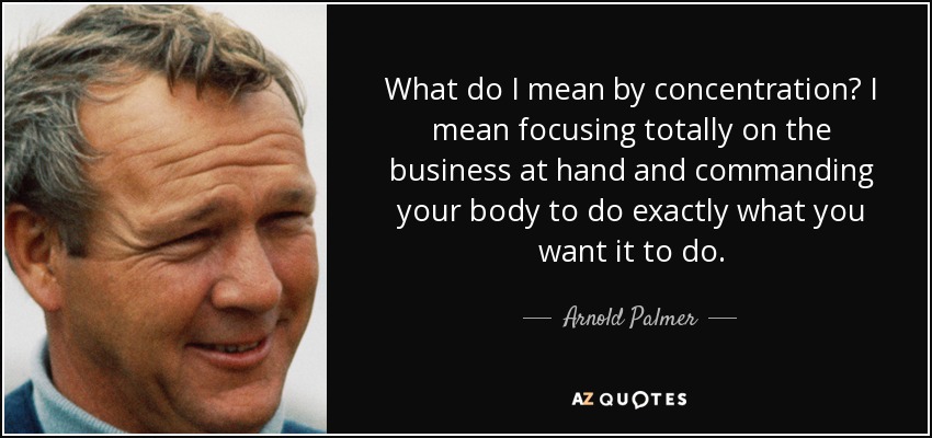 What do I mean by concentration? I mean focusing totally on the business at hand and commanding your body to do exactly what you want it to do.