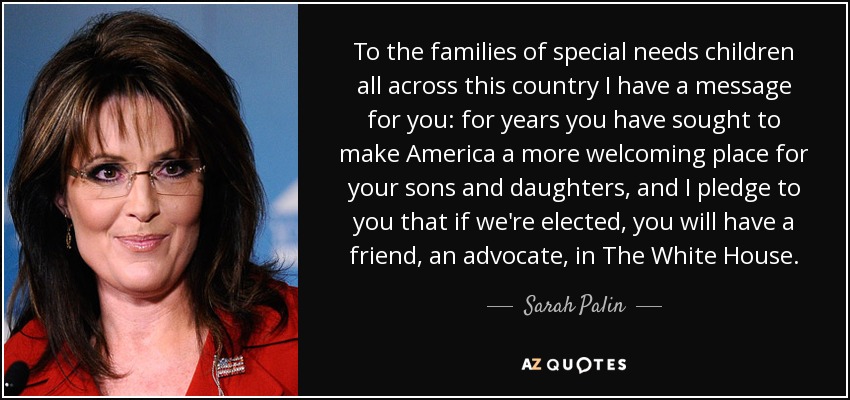 To the families of special needs children all across this country I have a message for you: for years you have sought to make America a more welcoming place for your sons and daughters, and I pledge to you that if we're elected, you will have a friend, an advocate, in The White House.
