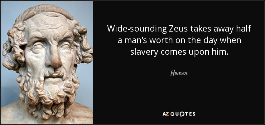 Wide-sounding Zeus takes away half a man's worth on the day when slavery comes upon him.